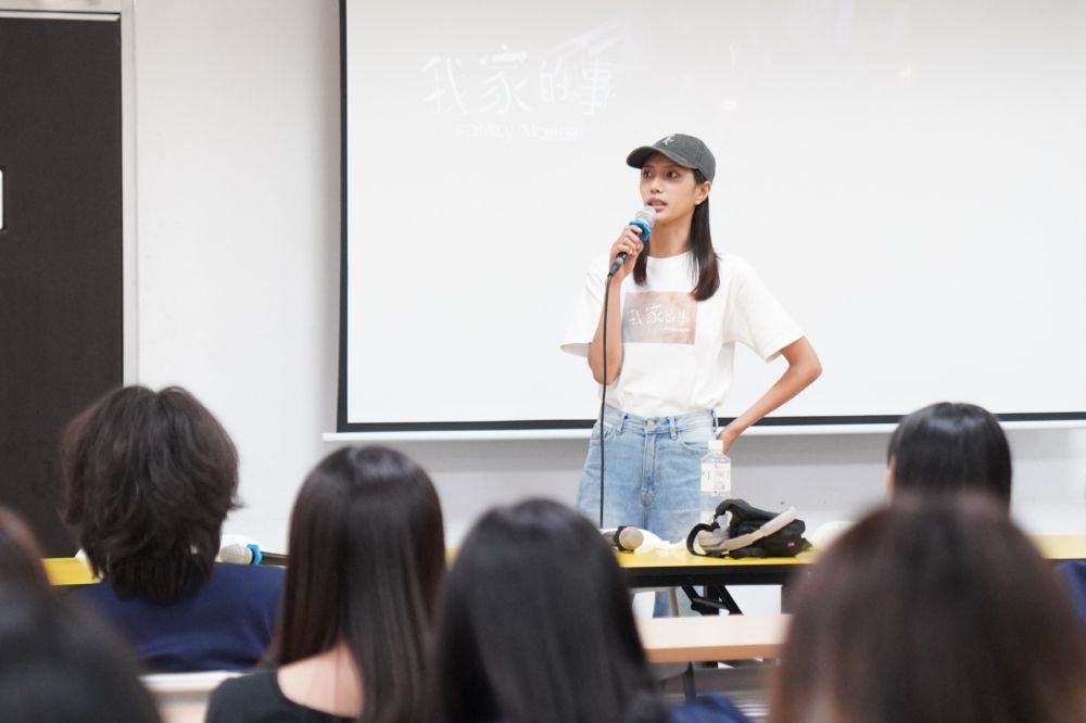 主演黃珮琪則以校友身分回母校,與學弟妹分享從模特兒轉向影視表演的歷程。她回憶在育達求學時期參與拍攝、MV與走秀活動的經驗,正是後來面對鏡頭時最寶貴的底蘊。她提到,自己習慣替角色寫日記,有些情緒劇本沒寫,但角色心裡會變化,這些變化要靠自己去體會。導演也盛讚她的表演層次與控制力,笑稱她是「淚水女王」,從19歲拍短片《姊姊》到五年後重返大銀幕,都展現了驚人的成熟度,能用不同的方式演繹同一個情緒,「她在鏡頭前懂得收,也懂得放,這是最迷人的地方。」