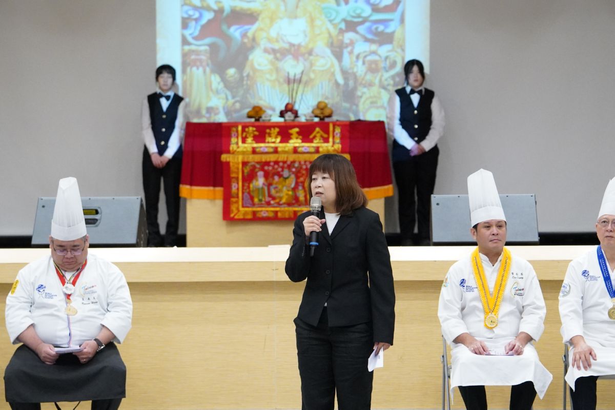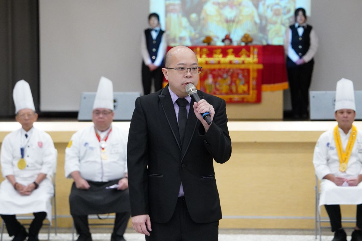 劉美琪主任致詞時感謝各界名廚蒞臨指導,讓學生能直接向業界前輩學習,汲取寶貴經驗。她勉勵同學珍惜學校提供的資源與機會,在學期間累積實力,為未來的專業之路奠定基礎。王志文會長也勉勵新生,在科技發達、人情疏離的時代,仍能舉辦拜師典禮實屬難得。學習廚藝不僅要勤奮,更要懂得尊重與傳承。