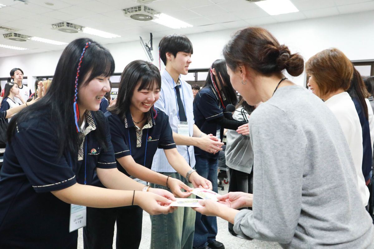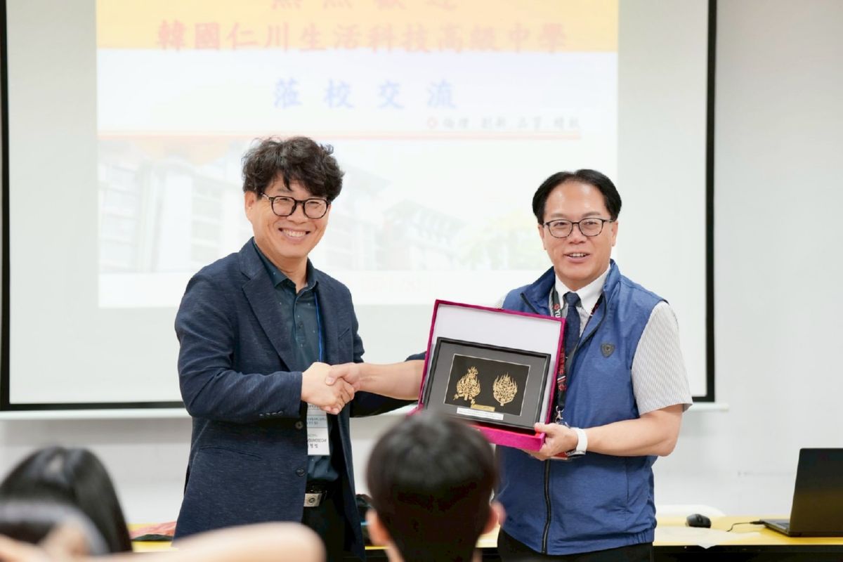 臺北育達高中於10月28日迎接韓國仁川生活科技高中師生來校交流,雙方以友誼與文化為橋樑,共同體驗專業課程、分享學習成果。活動由本校劉育仨校長親自接待,並致贈象徵台灣特色的鳳梨酥予仁川師長們;仁川校長亦回贈韓國傳統皇室裝飾紀念品,象徵兩校長久情誼與文化互敬,現場洋溢著青春與國際交流的活力。
