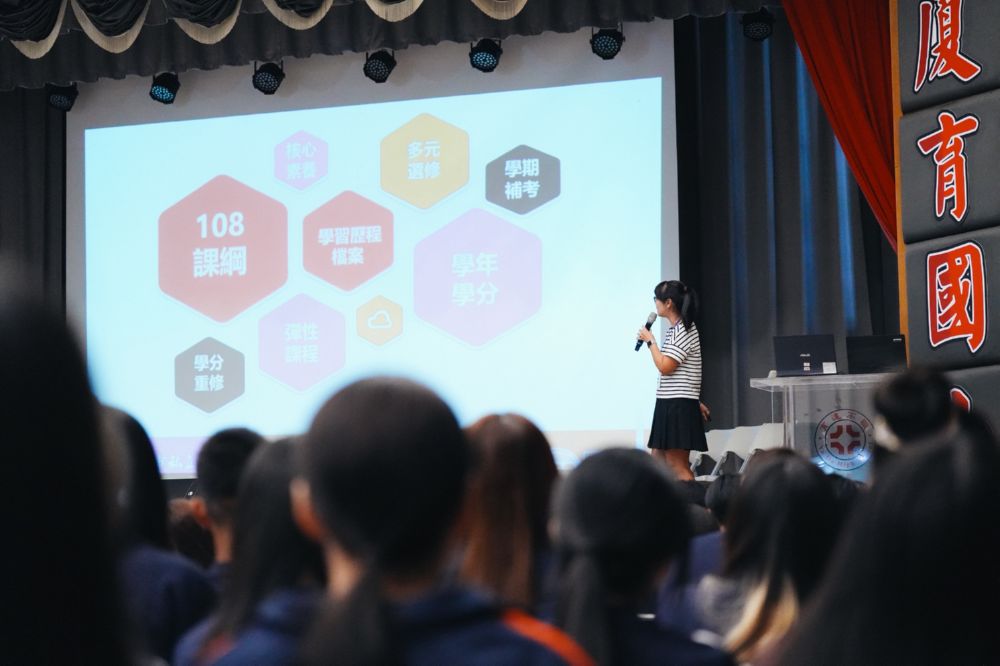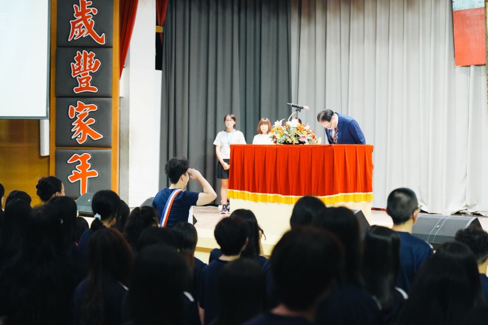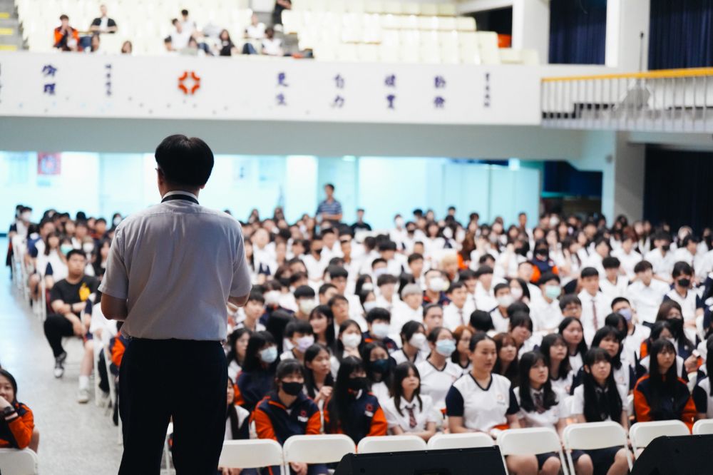 隨後,教務處向新生說明課業規劃與升學重點,特別強調學習歷程檔案是升學的重要依據,鼓勵養成持續上傳與整理的習慣,以展現最佳成果。學務處則提醒同學遵守請假程序,並認識校園安全與性別平等觀念,同時遠離菸品、電子菸及各類違禁品,共同維護健康學習環境。學校也期許新生在日常中落實「存好心、說好話、做好事」,培養責任感與服務精神。