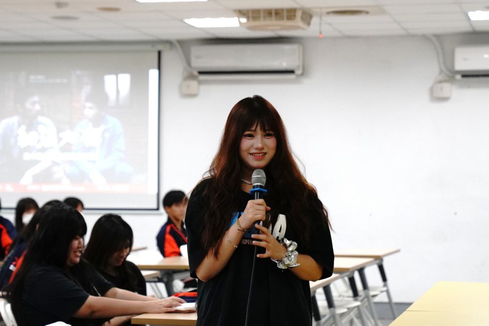 映後座談中,導演林英作耐心回應同學們的提問,從劇情的寓意到角色的設計,分享創作背後的思考與用心。他特別提醒表演藝術科的學生,演員需要具備清楚的口條與表達能力,因為聲音是最重要的表演工具,並勉勵大家勇於展現自我、積極嘗試。