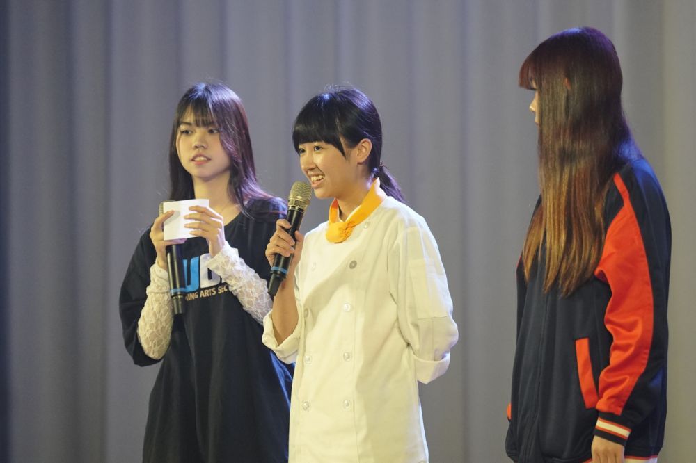 表藝科學生同時也是本次開訓典禮主持人,國中時期即曾參與技藝課程,並於臺北市國中技藝競賽藝術群戲劇組榮獲優勝,入學後獲頒2萬元獎學金;餐飲科代表學生曾於國中技藝競賽獲得第二名,高中階段更精進實力,代表學校參加全國家事技藝競賽榮獲金手獎;時尚科學生三年內除了取得美容、美髮證照外,更額外考取霧眉、美睫、美甲等專業證照,並於服裝設計比賽與奧林匹克晚宴新娘競賽中表現亮眼,更因優異表現獲選赴首爾參訪服裝產業,全程費用皆獲得補助。透過真實經驗的分享,展現從技藝探索到專業深化的完整歷程,也讓國中生看見努力與機會交會時所綻放的可能,從技藝體驗到專業深耕,育達以實務與競賽並進,讓學生的未來發展不設限。