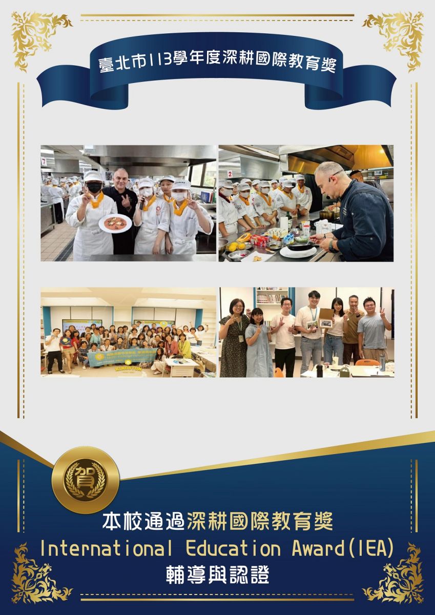 NEWS 各處室公告 首頁 各處室公告 狂賀~本校通過「臺北市113學年度深耕國際教育獎(International Education Award, IEA)輔導與認證」 2025-09-08 重要資訊 回列表