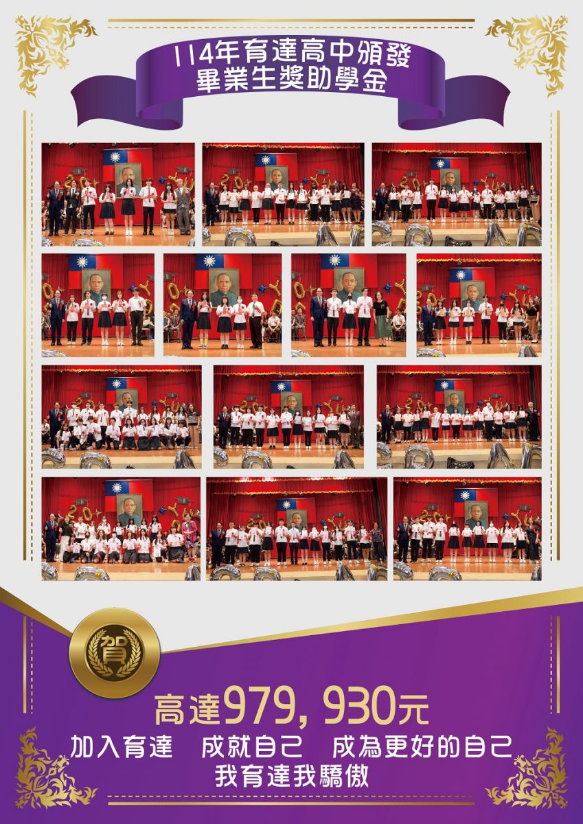 狂賀~本校頒發畢業生獎助學金高達979,930元,恭喜得獎同學!!
